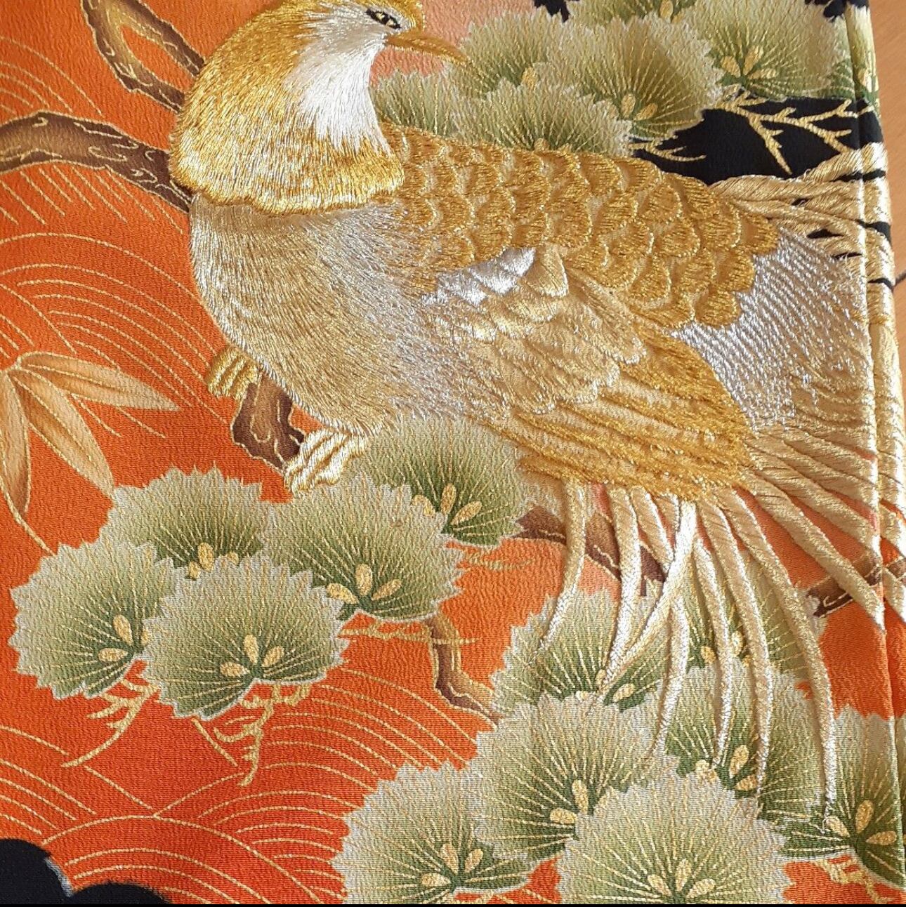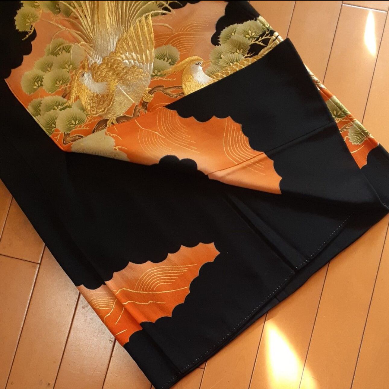 留め袖で作った巻きスカート風のスカートです。ウェストはゴムなので、66~88丈は85cmです。ゴム通し口を開けてあるので、少し調節できます。長期保管品ということですが、表も裏地も目立った汚れなどはありません。長期保管品にご理解のある方、よろしくお願いします。