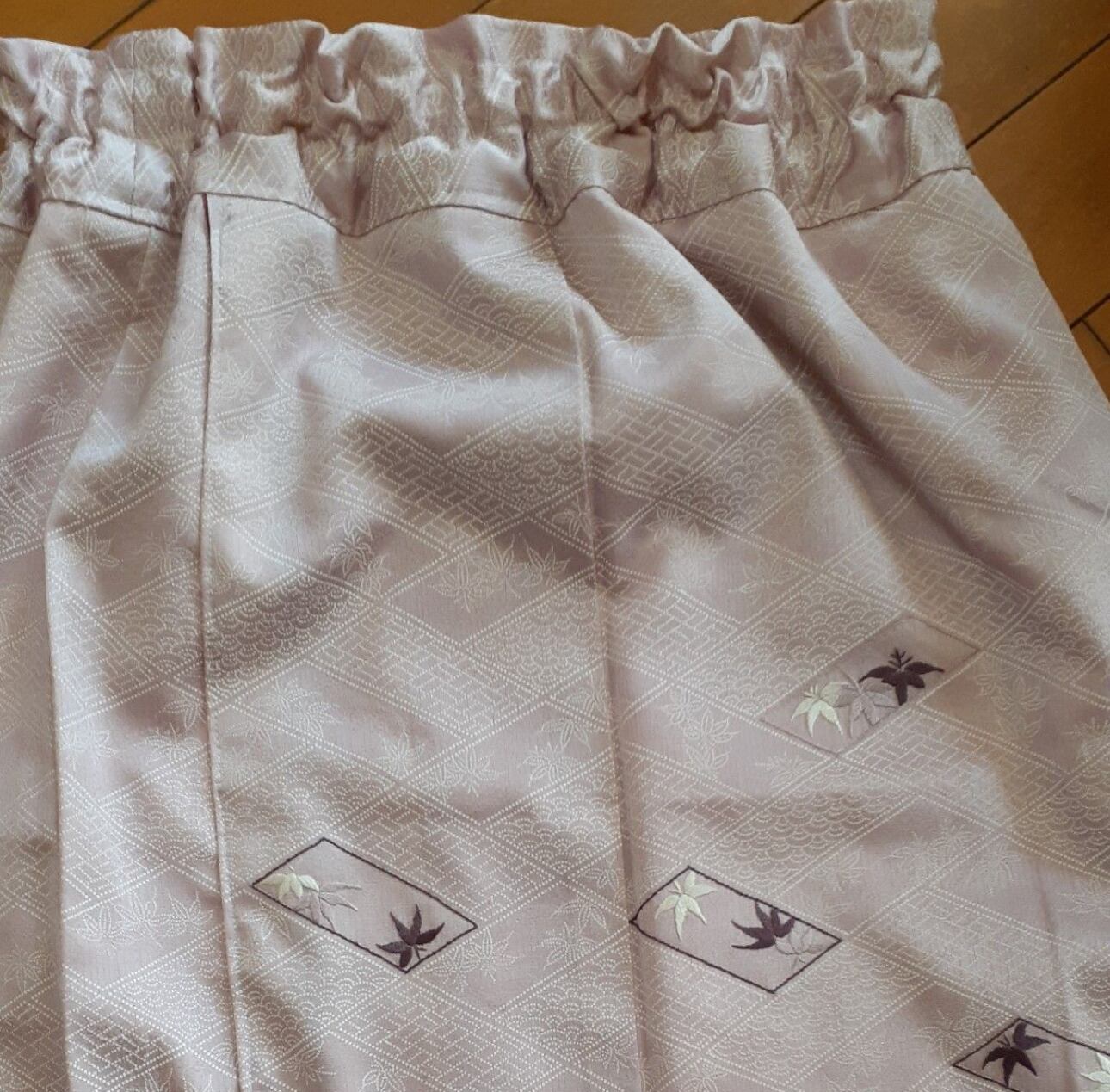 先に作ったスヌードとチュニックの余り布で、正絹の小紋の着物で、スカートを作りました。巻きスカート風になっています。ウェストはゴムなので、66~88丈は85cmです。ゴム通し口を開けてあるので、少し調節できます。長期保管品ということですが、おそらく未使用の着物で、表も裏地もきれいです。長期保管品ということにご理解のある方、よろしくお願いします。